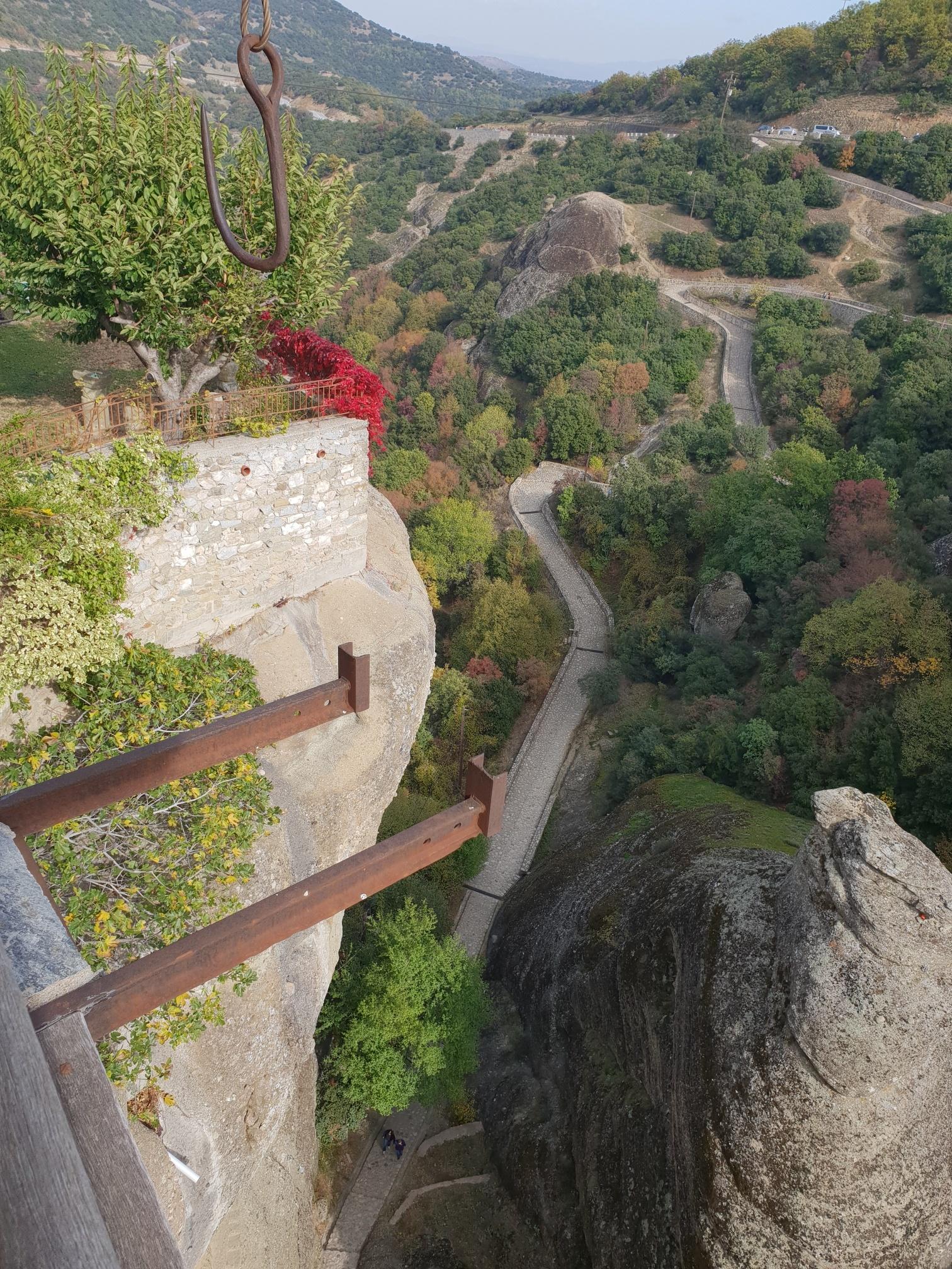Si les pièces à visiter sont beaucoup plus restreintes, Sainte-Trinité offre aussi plus de calme et de sérénité, avec une vue panoramique sur la vallée et le village en contrebas. En te penchant (pas trop quand même!) tu peux même apercevoir à l’aplomb de la montage le sentier de randonnée menant de Kalambaka vers les Météores, qu’empruntent les plus courageux visiteurs.